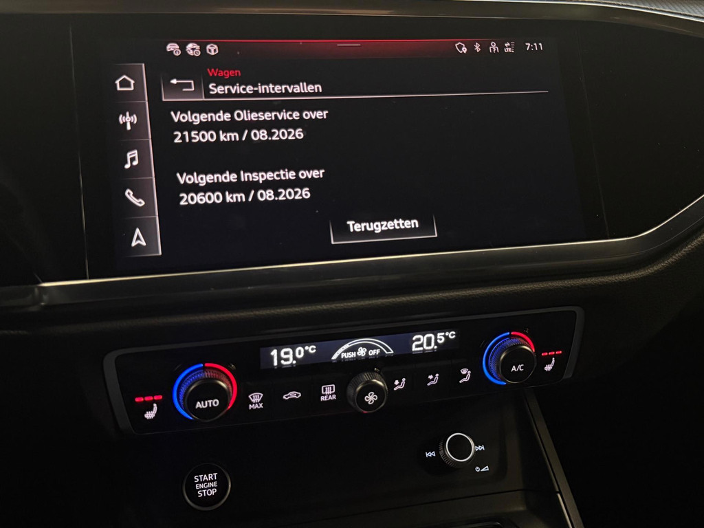 Kilometer na kilometer, bocht na bocht levert deze Audi Q3 Sportback de beste rijprestaties. Stijlvolle sportiviteit in uitstraling komt van de S-Line styling. De aandrijving van deze Audi wordt verzorgd door een viercilinder motor en een automatische transmissie. Lederen bekleding is een smaakvolle en comfortverhogende optie. Lekker hoor, die verwarmbare voorstoelen. Helemaal op koude dagen. De sportstoelen houden u en uw passagier stevig vast tijdens een snelle rit, maar bieden ook altijd comfortabele ondersteuning. Het elektrisch bediende panoramadak zorgt voor maximale lichtinval en frisse lucht in het interieur. De elektrische achterklep opent met een druk op de knop, zodat u gemakkelijk toegang heeft tot de bagageruimte. De slimme koplampen gebruiken de allernieuwste matrix LED-verlichting. Altijd maximaal zicht, nooit verblinding bij de tegenligger. Bij de uitrusting van deze Audi horen onder meer 20 inch lichtmetalen velgen, warmtewerend glas, in delen neerklapbare achterbank, LED-achterlichten en variabele stuurbekrachtiging.