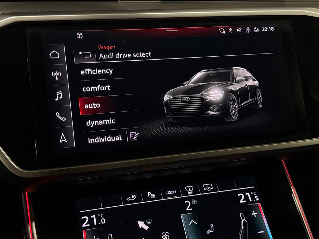 Auto's als deze Audi A6 Avant bieden tegelijk rijdynamiek, comfort en degelijkheid. Het S-Line styling pakket maakt direct duidelijk waar deze Audi voor staat: onversneden sportiviteit en rijdynamiek. Een krachtige motor geeft deze auto zijn sportieve prestaties. Topklasse: daar hoort leren bekleding absoluut bij. Op koude en donkere dagen zijn de verwarmbare voorstoelen een uitkomst. Ziet er goed uit, die sportstoelen. Maar waar het om gaat, is de solide zit onder alle omstandigheden. Licht, luxe en gemak komen samen in de vorm van het elektrische bediende glazen panoramadak. De elektrische achterklep opent met een druk op de knop, zodat u gemakkelijk toegang heeft tot de bagageruimte. Aan een fijn opwarmertje in de kille dagen is gedacht, in de vorm van een verwarmd stuurwiel. U wordt in deze auto ook getrakteerd op 21 inch lichtmetalen velgen, sportonderstel, halflederen bekleding, LED matrix verlichting, warmtewerend glas en in delen neerklapbare achterbank.