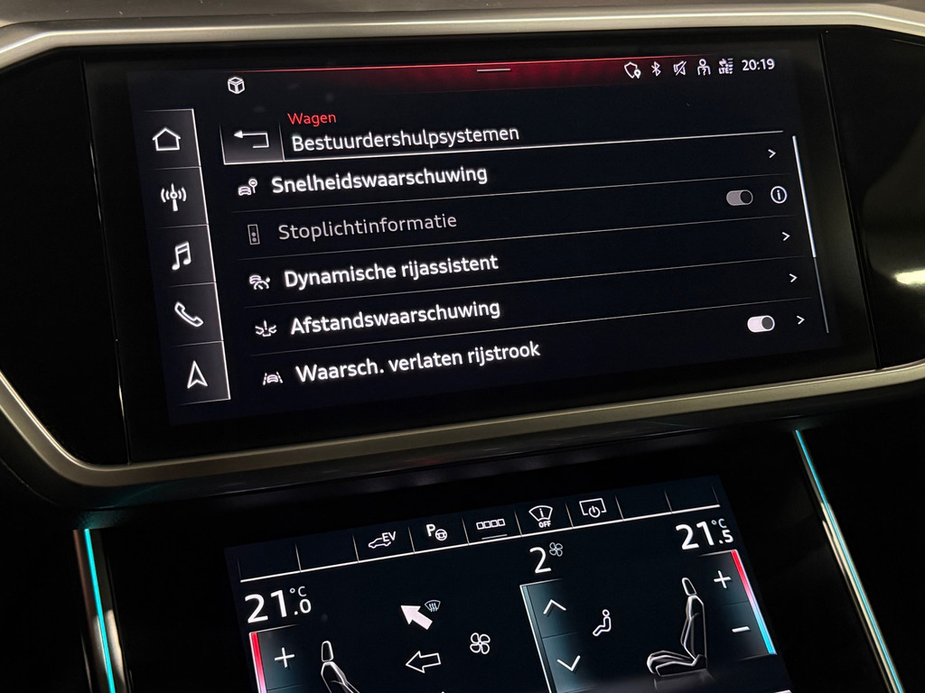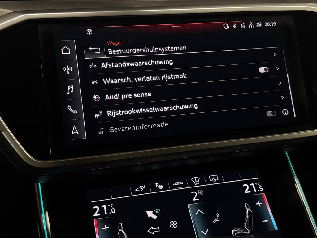 De automatische veiligheidssystemen in deze Audi fungeren als een extra paar ogen. En dat niet alleen, ze kunnen ook actief ingrijpen, om zo u en uw passagiers te beschermen. Uiteenlopende functies maakt de head-up display zichtbaar in de voorruit. Bij de veiligheidssystemen van deze auto hoort ook de verkeersbord-detectie. Die leest tijdens het rijden als het ware met u mee en attendeert u op de significante verkeersborden langs en boven de weg. Met het Lane-keeping systeem komt u nooit per ongeluk buiten de rijstrook. In deze Audi vinden we verder een dodehoekdetectie, accident avoidance system, forward collision warning system en brake assist.