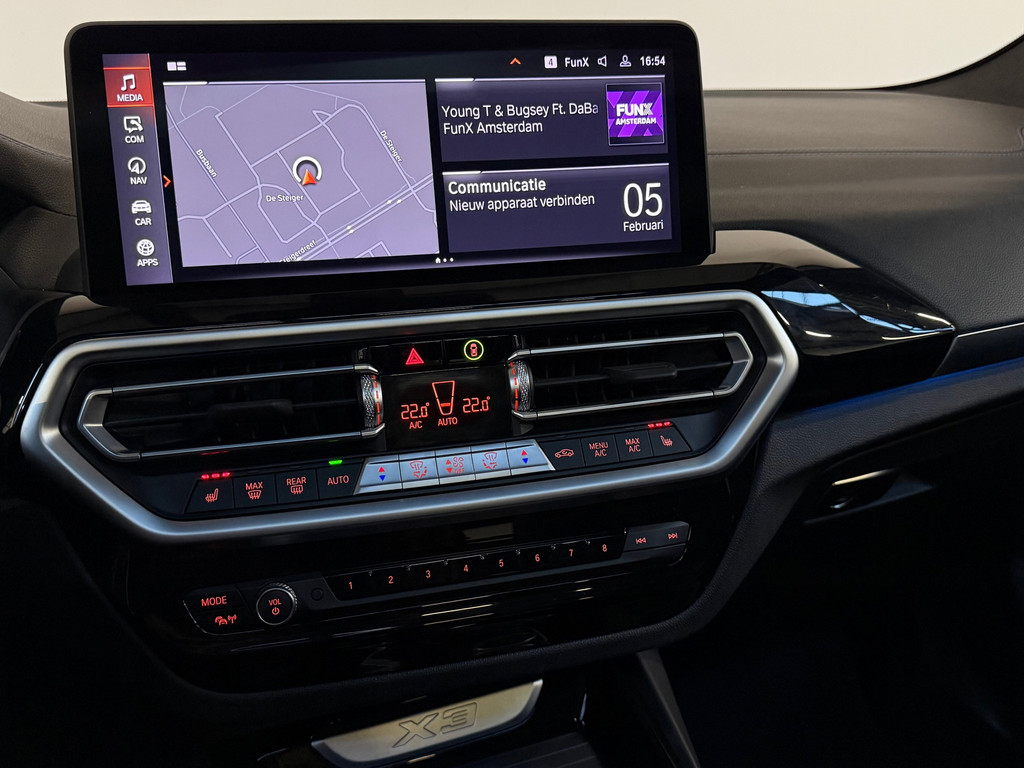 Neem plaats in de cockpit, start de motor en voel het vermogen. Met deze sportieve BMW X3 hebt u altijd de controle. De uitstekende prestaties van deze auto komen van de viercilinder motor en de automatische transmissie. Mooi hoe luxe en gemak hier samengaan. Een fraai lederen interieur en een elektrisch bedienbare achterklep. De verwarmbare voorstoelen benadrukken nog maar eens dat we hier te maken hebben met een regelrechte verwenauto voor bestuurder en bijrijder. De sportstoelen zien er niet alleen prachtig uit, maar zijn ook functioneel, zoals u kilometer na kilometer zult merken. Het wijdse uitzicht door het glazen panoramadak maakt van elke rit een belevenis. Ook is de auto voorzien van: 20 inch lichtmetalen velgen, LED koplampen, LED-achterlichten, verwarmde ruitensproeiers en snelheidsafhankelijke stuurbekrachtiging.