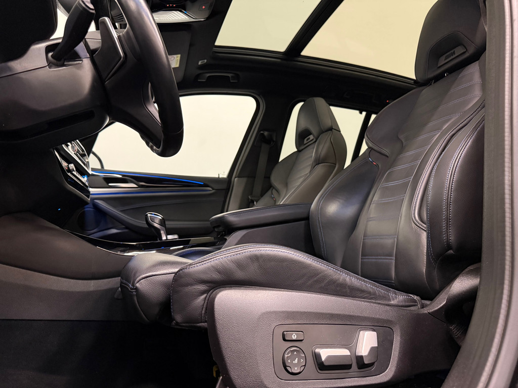 Auto's als deze BMW X3 bieden tegelijk rijdynamiek, comfort en degelijkheid. Een krachtige motor geeft deze auto zijn sportieve prestaties. Zonder overdrijven een uitvoering met luxe en gemak: het elektrisch bediende glazen panorama dak, de elektrisch bedienbare achterklep en een mooi lederen interieur. Zit u goed? De stoelen zijn eenvoudig instelbaar dankzij de elektrische bediening met geheugen. Deze auto levert de ultieme rijervaring met eersteklas functies zoals stoelverwarming, een verwarmbare achterbank en een verwarmbaar stuur. Bij de uitrusting van deze auto horen onder meer 20 inch lichtmetalen velgen, LED koplampen, extra getint glas, LED-achterlichten, verwarmde ruitensproeiers en snelheidsafhankelijke stuurbekrachtiging.