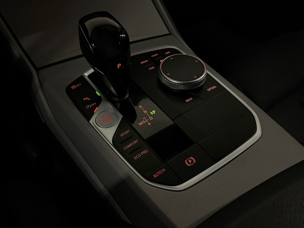 Het digitale dashboard is een perfecte bijrijder. Alles benodigde informatie is permanent zichtbaar of opvraagbaar. Connected Services voegt nog meer comfort en veiligheid toe aan deze auto. In deze 3-serie vindt u niet alleen schakelaars op het stuur om het audio-installatiesysteem te bedienen en het navigatiesysteem met harde schijf, maar er is ook spraakbediening. U verwacht natuurlijk electronic climate control in deze auto, en die is er dan ook. Met de hulp van de parkeersensoren kost inparkeren en uitparkeren u geen enkele moeite. Wat u ook in deze auto kunt vinden zijn regensensor, cruise control, sportstuurwiel, automatisch dimmende binnenspiegel, centrale deurvergrendeling met afstandsbediening en boordcomputer.