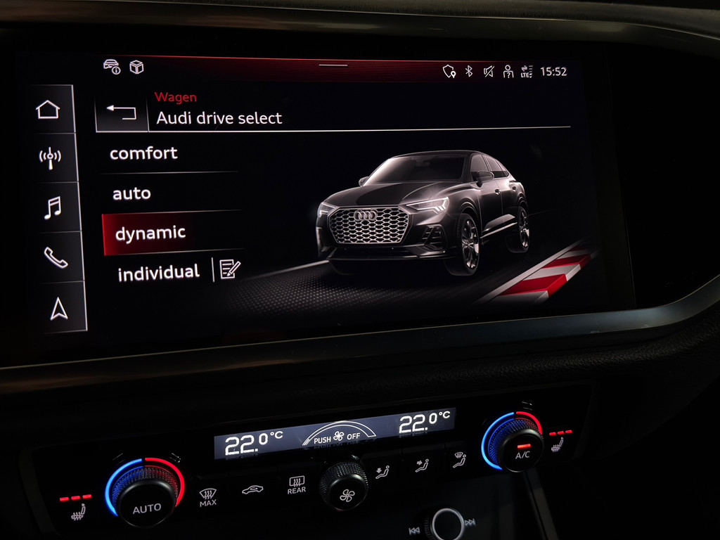 Uitmuntende prestaties, dynamische rijeigenschappen en bakken vol met rijplezier, deze Audi Q3 Sportback levert het allemaal. De begrippen exclusief en sportief zijn allebei van toepassing op de markante S-Line styling. De uitstekende prestaties van deze auto komen van de viercilinder motor en de automatische transmissie. Het lederen interieur voegt stijl en allure toe. Bestuurder en bijrijder krijgen een warm welkom: deze Audi Q3 Sportback is voorzien van verwarmbare voorstoelen. Scherpe bochten, pittige acceleraties? In de sportstoelen blijft u altijd in positie. Houdt u van frisse lucht en van licht dan zit u helemaal goed met het elektrisch bediende panoramadak. De elektrisch bedienbare achterklep opent met een druk op de knop. De slimme koplampen gebruiken de allernieuwste matrix LED-verlichting. Altijd maximaal zicht, nooit verblinding bij de tegenligger. Bij de uitrusting van deze Audi horen onder meer 20 inch lichtmetalen velgen, halflederen bekleding, warmtewerend glas, in delen neerklapbare achterbank, LED-achterlichten en verstelbare lendensteunen.