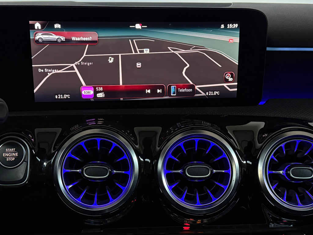 Mercedes A 250 e AMG Night | 1 jaar garantie | Nieuwe facelift model | Panorama dak | Memory seats | Burmester Sound | Headup Display | Multibeam Led | Distronic Adaptieve Cruise Control | Sfeerverlichting | 1e eigenaar | 360 Camera | Keyless entrey + Keyless Go | Stoelverwarming | Dode hoek detectie | Origineel Multispaaks 19 Inch velgen | Alcantara Leder