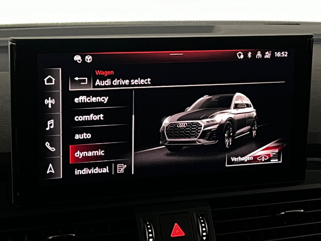 Gebouwd voor liefhebbers van autorijden, deze Audi Q5 levert sportieve prestaties en onafgebroken rijplezier. Met de S-Line styling mag deze auto zeker gezien worden. De uitstekende prestaties van deze auto komen van de viercilinder motor en de automatische transmissie. Laat de zon maar schijnen door het elektrisch bediende glazen panorama dak en hou een handje over dankzij de elektrisch bedienbare achterklep. Niks vergeten? O ja toch: het lederen interieur moeten we zeker even noemen. De verwarmbare voorstoelen inclusief massagefunctie benadrukken nog maar eens dat we hier te maken hebben met een regelrechte verwenauto. Altijd een goede zitpositie bij iedere snelheid, dankzij de sportstoelen. Zelfs een oude klinkerstraat voelt aan als een biljartlaken dankzij de luchtvering. De koplampen zijn voorzien van de allernieuwste lichttechnologie: matrix LED-verlichting. Verder is de Audi uitgerust met: 21 inch lichtmetalen velgen, warmtewerend glas, aluminium dakrailing, elektrisch inklapbare buitenspiegels, in delen neerklapbare achterbank en LED-achterlichten.