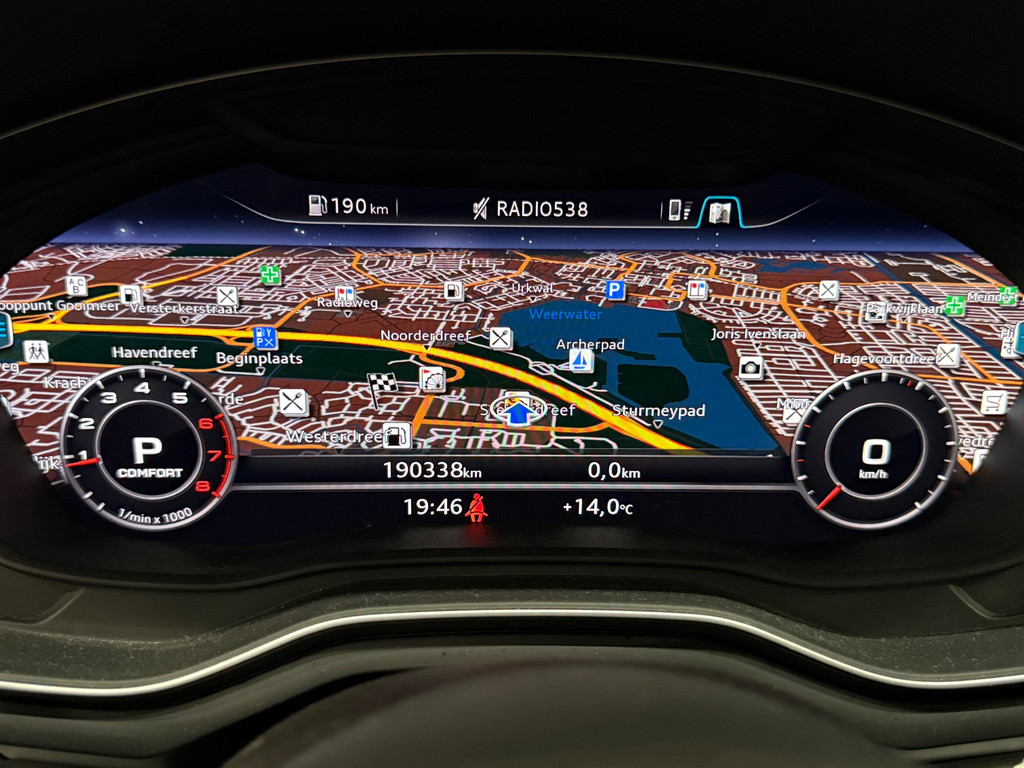 Ervaar de wonderen van de digitale mobiliteitswereld waarbij alles wat u wenst op het digitale dashboard verschijnt. Bij het inparkeren laat de achteruitrijcamera precies zien hoeveel meter... decimeter... centimeter ruimte er nog is! Zo'n lekkere jonge auto heeft natuurlijk leuke extra's, zoals remote services. Met een speciale app maakt u overal verbinding met de auto. Zo kunt u functies activeren en controleren. Tijdens de rit bedient u het audio-installatiesysteem en het navigatiesysteem met harde schijf met de knoppen op het stuur of met uw stem. Nooit meer te warm of te koud. De electronic climate control zorgt altijd voor de temperatuur die u kiest. U bent in deze Audi ook voorzien van sportstuur met schakelpaddels, regensensor, cruise control, automatisch dimmende buitenspiegels, centrale deurvergrendeling met afstandsbediening en boordcomputer.