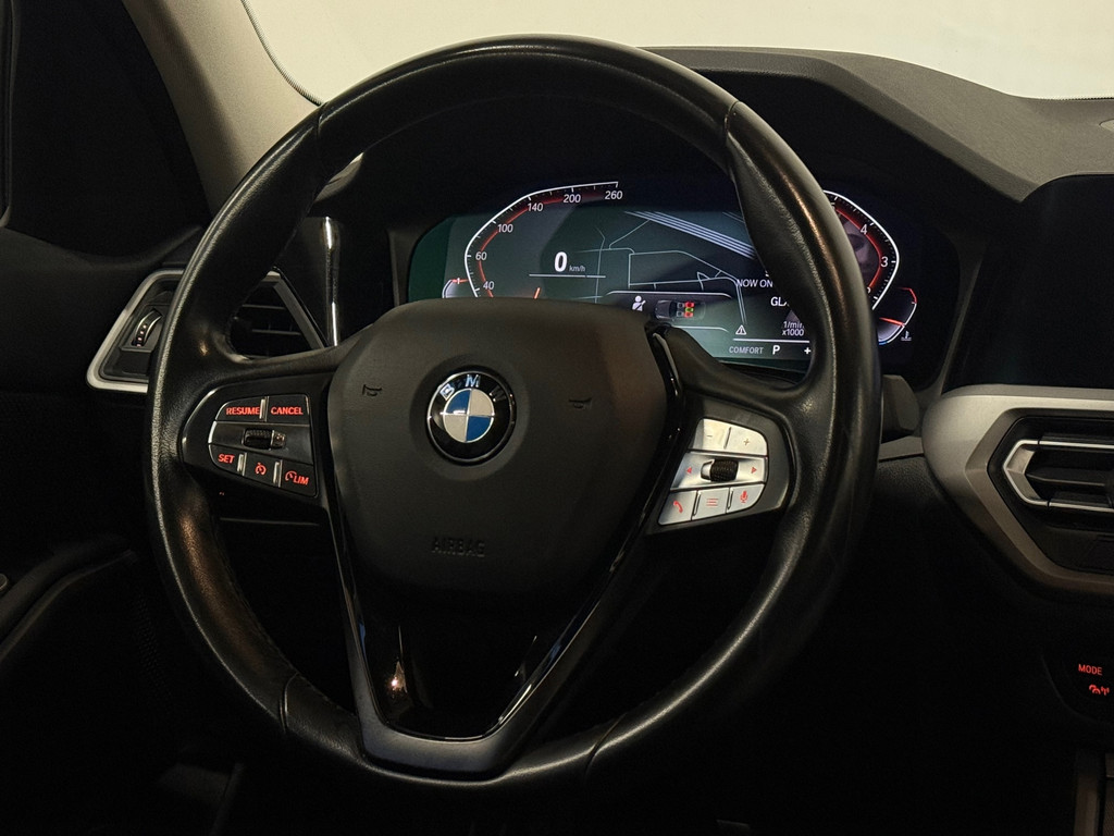 Het digitale dashboard is een perfecte bijrijder. Alles benodigde informatie is permanent zichtbaar of opvraagbaar. Connected Services voegt nog meer comfort en veiligheid toe aan deze auto. In deze 3-serie vindt u niet alleen schakelaars op het stuur om het audio-installatiesysteem te bedienen en het navigatiesysteem met harde schijf, maar er is ook spraakbediening. U verwacht natuurlijk electronic climate control in deze auto, en die is er dan ook. Met de hulp van de parkeersensoren kost inparkeren en uitparkeren u geen enkele moeite. Wat u ook in deze auto kunt vinden zijn regensensor, cruise control, sportstuurwiel, automatisch dimmende binnenspiegel, centrale deurvergrendeling met afstandsbediening en boordcomputer.