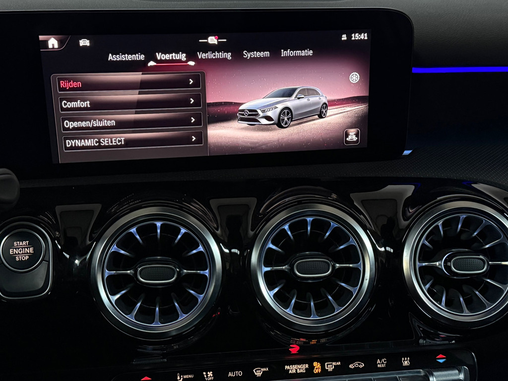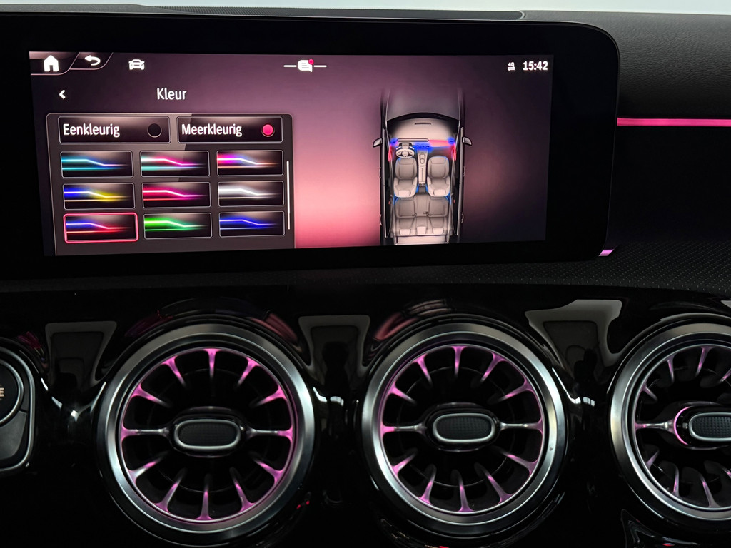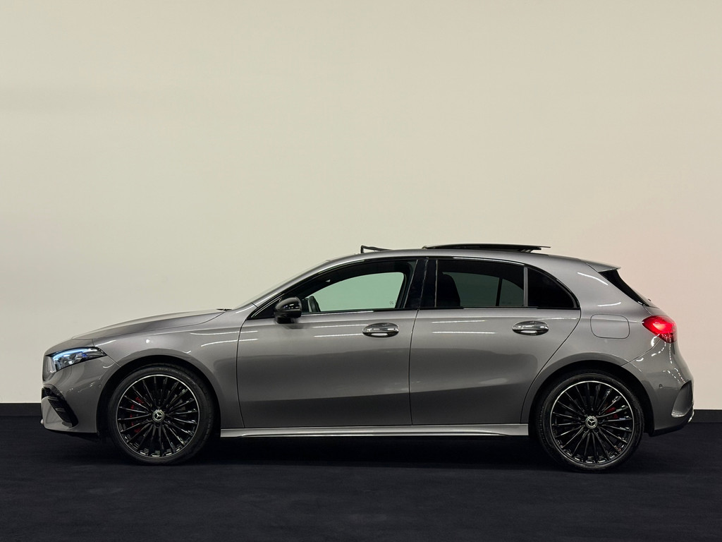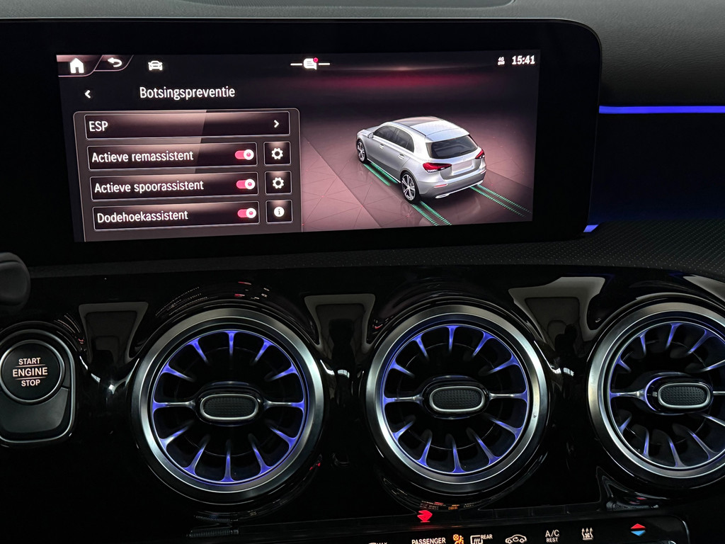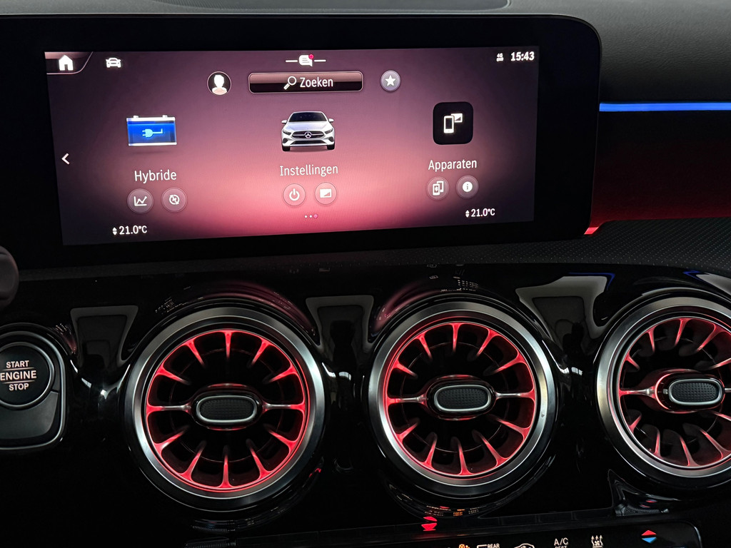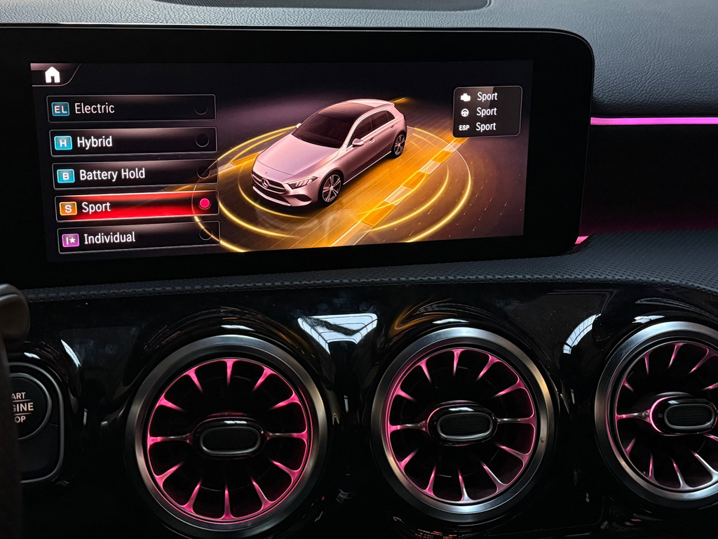 Mercedes A 250 e AMG Night | 1 jaar garantie | Nieuwe facelift model | Panorama dak | Memory seats | Burmester Sound | Headup Display | Multibeam Led | Distronic Adaptieve Cruise Control | Sfeerverlichting | 1e eigenaar | 360 Camera | Keyless entrey + Keyless Go | Stoelverwarming | Dode hoek detectie | Origineel Multispaaks 19 Inch velgen | Alcantara Leder
