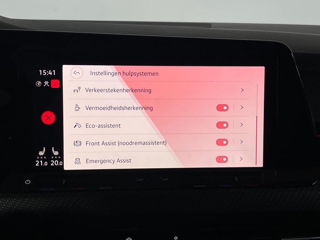 De DAB-ontvanger zorgt voor een ruime keuze uit digitale radiozenders en een kristalheldere geluidsweergave. Naast handmatige bediening kunt u belangrijke functies met uw stem bedienen dankzij de ingebouwde spraakbediening. Waarheen gaat de reis? Het navigatiesysteem brengt u trefzeker ter plekke! Qi is de standaard om uw telefoonaccu zonder snoer weer op 100% te krijgen. Met de draadloze oplaadmogelijkheid voor telefoons. De auto is ook uitgevoerd met automatische airconditioning. De parkeerhulp met achteruitrijcamera geeft u duidelijk zicht op de ruimte achter de auto. Ziet u een tegenligger over het hoofd, dan waarschuwt het kruisend verkeer detectie systeem direct. Deze Volkswagen Golf maakt het rijden graag gemakkelijk. Daarom verzorgt de regensensor de mate van ruitreiniging die de ruitenwissers moeten leveren bij neerslag. Als u de adaptive cruise control inschakelt, regelt de auto zelf de snelheid en de afstand tot de auto voor u. Eenkennig is deze auto wel. Instappen en starten kan alleen als u de keyless start-token op zak heeft.