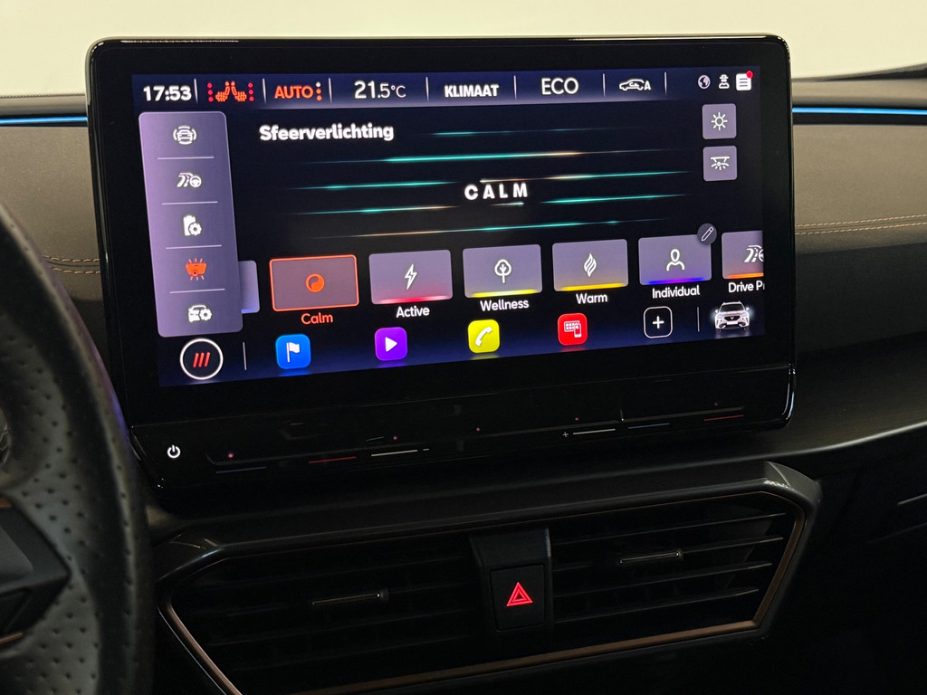Nooit meer beslagen ramen of ramen krabben. Met deze auto bent u altijd klaar voor de winter dankzij de standkachel. Het digitale dashboard ondersteunt u voortdurend met actuele, bruikbare informatie. Inparkeren? Met de parkeerhulp met achteruitrijcamera heeft u er geen omkijken meer naar! Adaptive cruise control houdt de ingestelde snelheid vast en houdt afstand tot het voertuig voor u. Spraaksturing betekent dat u verschillende functies met uw stem kunt bedienen. De CUPRA is standaard voorzien van: connected drive services, navigatiesysteem, automatische airconditioning, draadloos opladen, DAB ontvangst en regensensor.