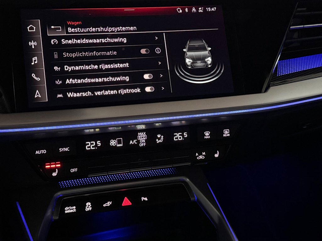 U geniet nog meer van het rijden met uw Audi omdat u wordt beschermd door intelligente veiligheidssystemen. Onderweg zorgt verkeersborddetectie ervoor dat u geen waarschuwingsbord mist. Het Lane-keeping systeem zorgt voor een automatisch constante positie binnen de rijstrook. Afdwalen is uitgesloten. Het accident avoidance system helpt aanrijdingen te voorkomen. De veiligheid van deze auto wordt verder verhoogd door hill hold functie, brake assist en bandenspanningcontrolesysteem.