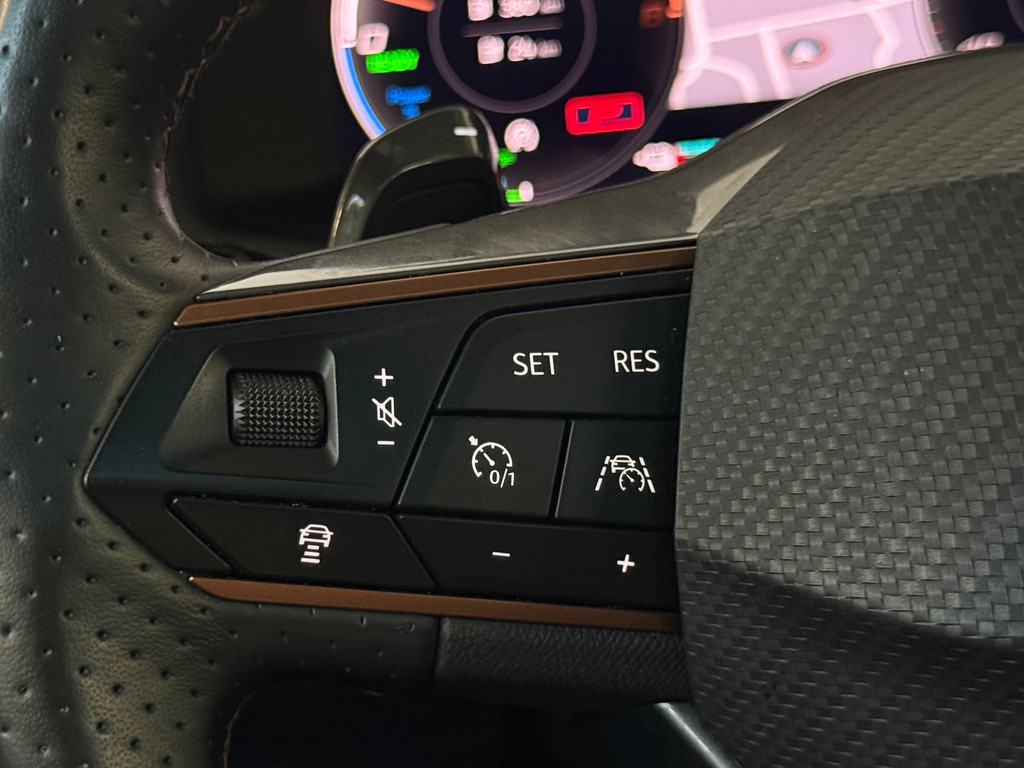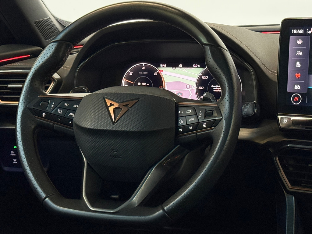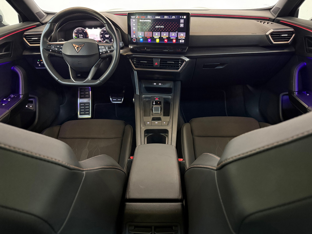 Deze auto nodigt u uit om plaats te nemen achter het sportstuur en onmiddellijk de weg op te gaan. De aandrijving van deze Cupra wordt verzorgd door een viercilinder motor en een automatische transmissie. De auto is uitgerust met lederen bekleding. De verwarmbare voorstoelen zijn een weldaad voor rug en schouders. De sportstoelen geven het interieur een super strakke look. Het elektrisch bediende panoramadak zorgt voor maximale lichtinval en frisse lucht in het interieur. De elektrisch bedienbare achterklep opent met een druk op de knop. Fijn plusje, zeker in de kille dagen, is het verwarmd stuurwiel. Bij de uitrusting van deze Cupra horen onder meer 19 inch lichtmetalen velgen, LED matrix verlichting, extra getint glas, in delen neerklapbare achterbank, LED-achterlichten en verstelbare lendensteunen.